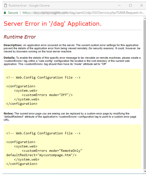 Configuration system web customerrors mode off system web configuration. WebConfig Configuration File -- Notes. Thanks for the help. The current error page you are seeing can be replaced by a custom error page by modifying the defaultRedirect attribute of the applications configuration tag to point.