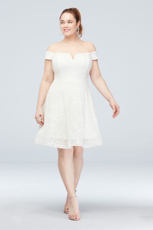 Off the shoulder lace skater dress. We cant seem to take our eyes off of the Lulus So Captivated White Embroidered Lace Off-the-Shoulder Mini Dress. I also would have also preferred it in the ivory. Pair it with a simple stiletto heel or a lower heel for comfort with the dress for a winning look.